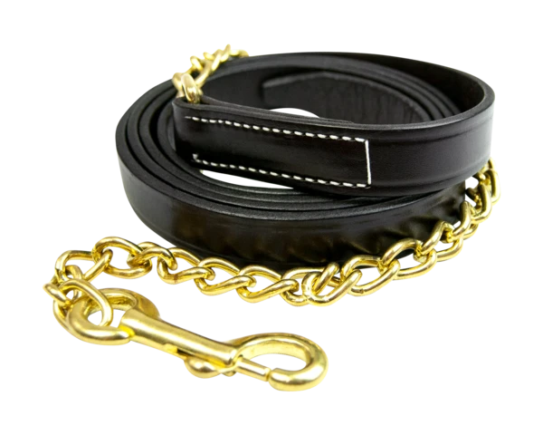 A great everyday leather lead measuring 6′ long and 1″ wide with a 24″ solid brass chain.